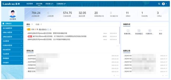 蓝凌智能招采管理平台,通过任务分配、项目发起等流程设计,推动采购项目高校落地。