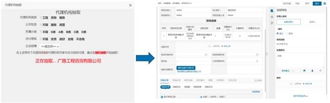 代理机构抽取:根据项目类型(工程 / 货物 / 服务)、代理机构资质等级等条件,从代理机构库中随机抽取合作机构,抽取结果自动写入采购项目表单,避免人为干预;