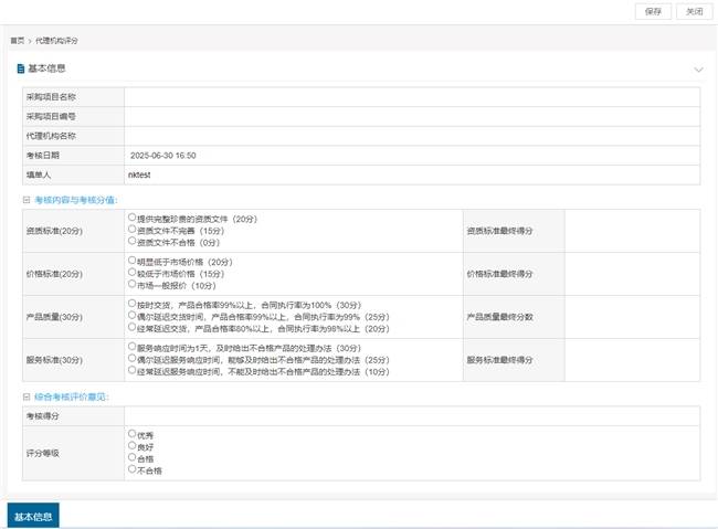 评价分级:从“资质标准、价格标准、服务质量、履约能力”四大维度对代理机构进行评分,根据总分确定代理机构评分等级,不合格机构将暂停或终止合作,确保代理服务质量。