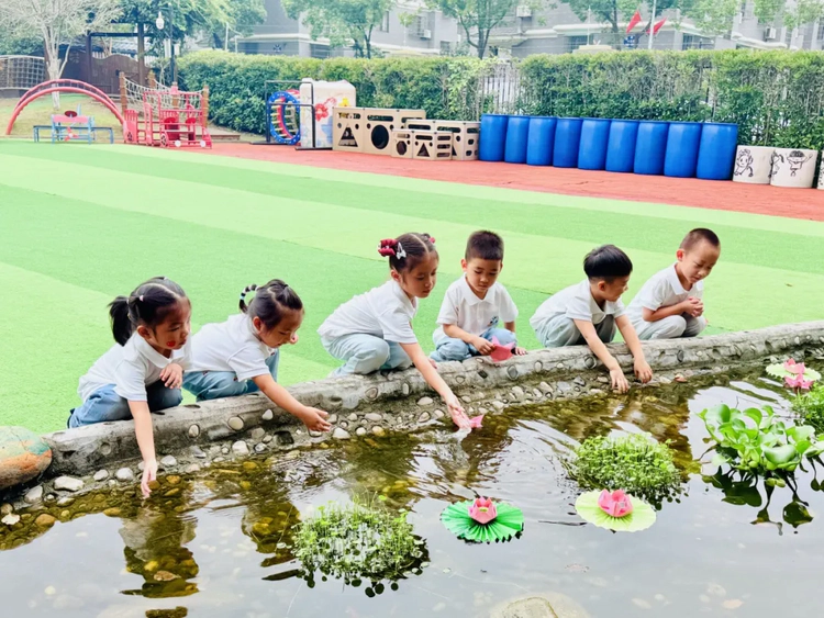 最后,宝贝们把团圆祝愿装进荷花灯放入小池塘,盼愿望实现。活动为孩子开启别样中秋探索之旅,也祝大家中秋团团圆圆、幸福安康!