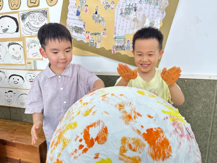 体验:孩子们将蘸满颜料的小手印在月亮灯上,一个承载着团圆心愿的月亮灯便悄然成型。